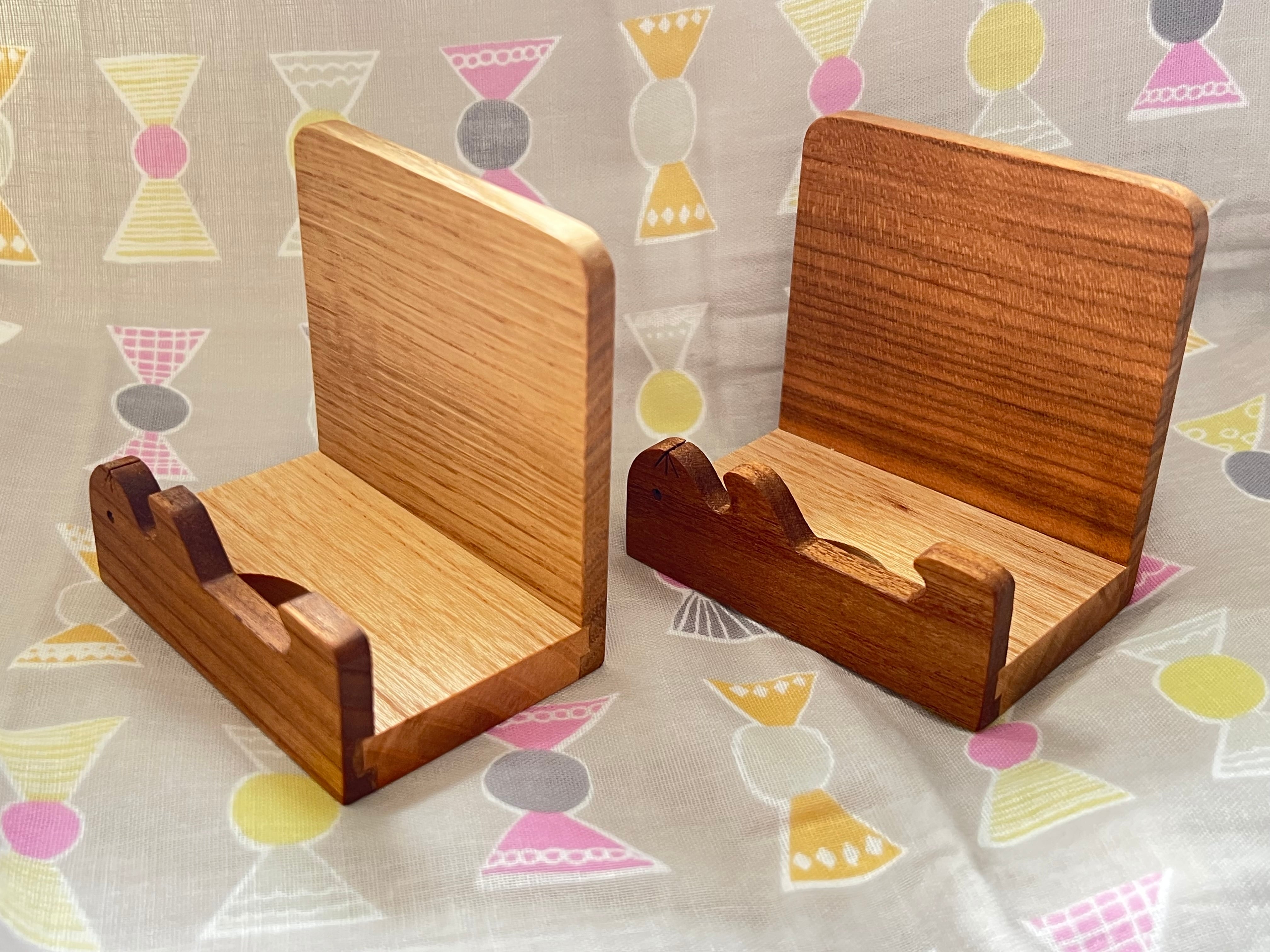 宮城県産・登米市産の広葉樹を使用した、シンプルでかわいく上品なデザインが特徴です。スマホスタンドとして使うだけでなく、デスクやテーブルのインテリアとしてもおしゃれに映えるアイテムです。
