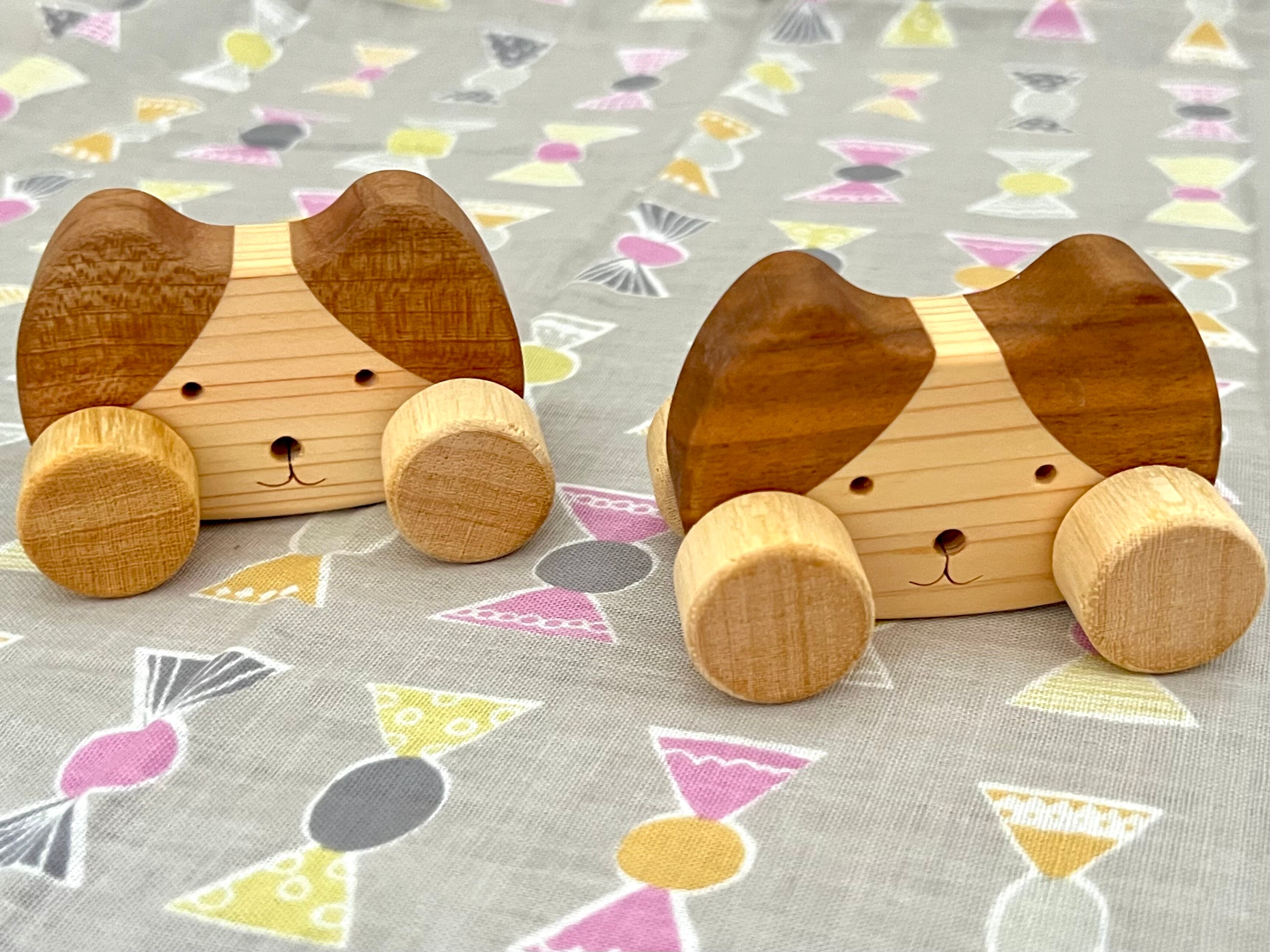 小ぶりでかわいいねこカーは、登米市産のサクラとヒノキを使用。塗料はドイツ生まれの自然塗料・オスモカラーを使用しており、安全性にも配慮し小さなお子さまにも安心してお使いいただけます。