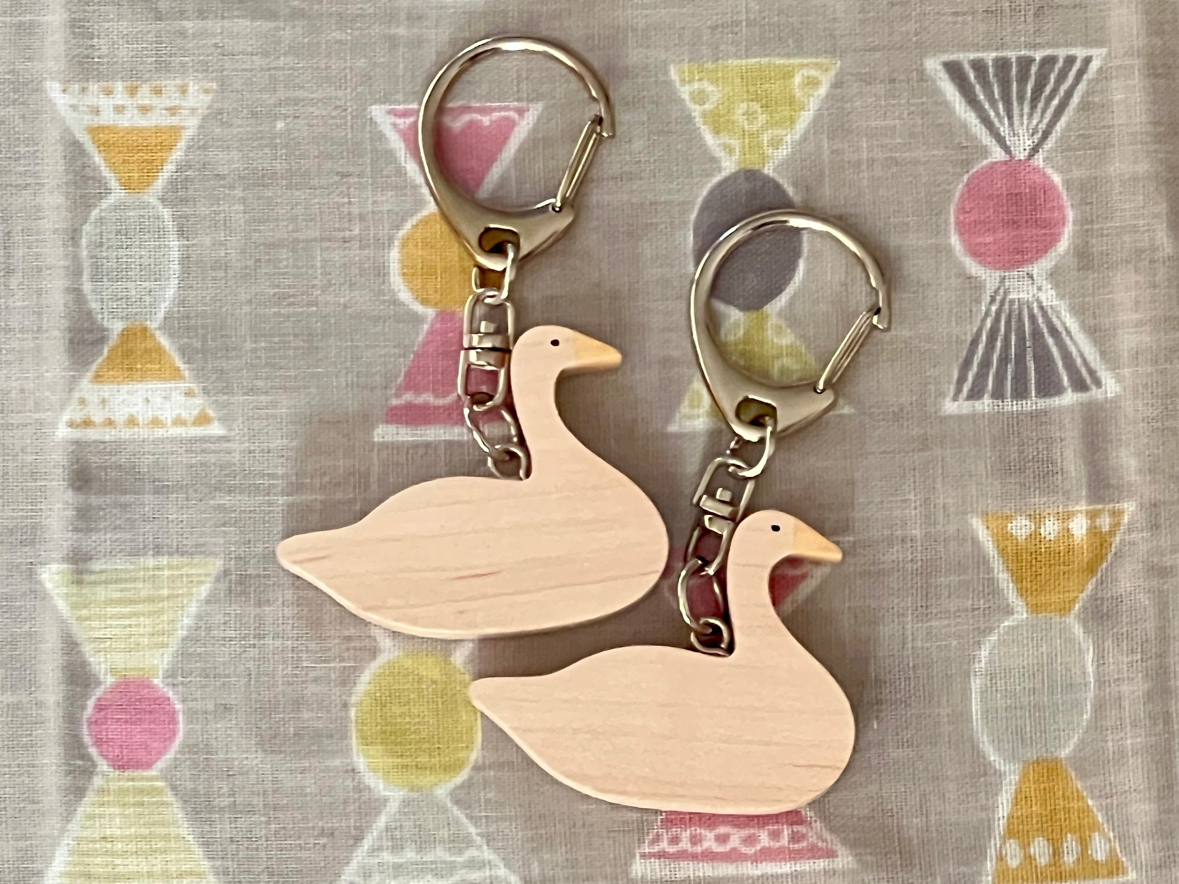 登米市産の広葉樹(イタヤカエデ)を使用した、白鳥のキーホルダーです。くちばしの部分はカヤを使用しております。